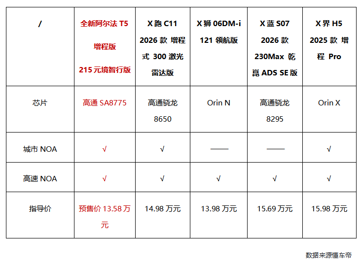 从年轻时尚外观设计到北汽神擎增程的硬核加持,从全系标配宁德时代电池到全球首个搭载骁龙8775舱驾一体解决方案,从麦格纳世界级品质到“近0醛0苯”健康座舱,全新阿尔法T5“一车满足全家需求”,让中级车“不再中级”,带给众多年轻家庭时尚动感、驾乘自由、智能舒适、可靠安全的SUV新体验。