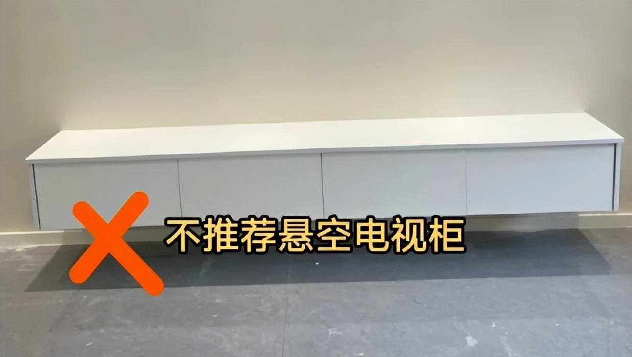 悬浮电视柜是固定在墙壁中,它的重力点都在墙壁上,如果你家电视背景墙是空心砖,承重能力差,入住之后会发现悬浮电视柜会有下沉的情况,严重就开裂了。