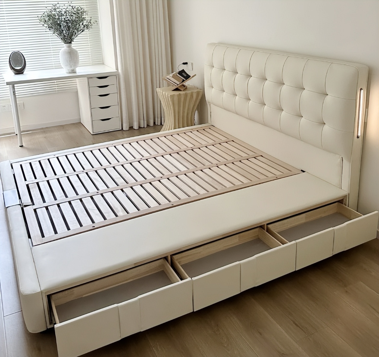 对于我是如何设计,个人觉得没必要去选择定制榻榻米,不如放普通的床,要是有收纳需求用储物床即可。