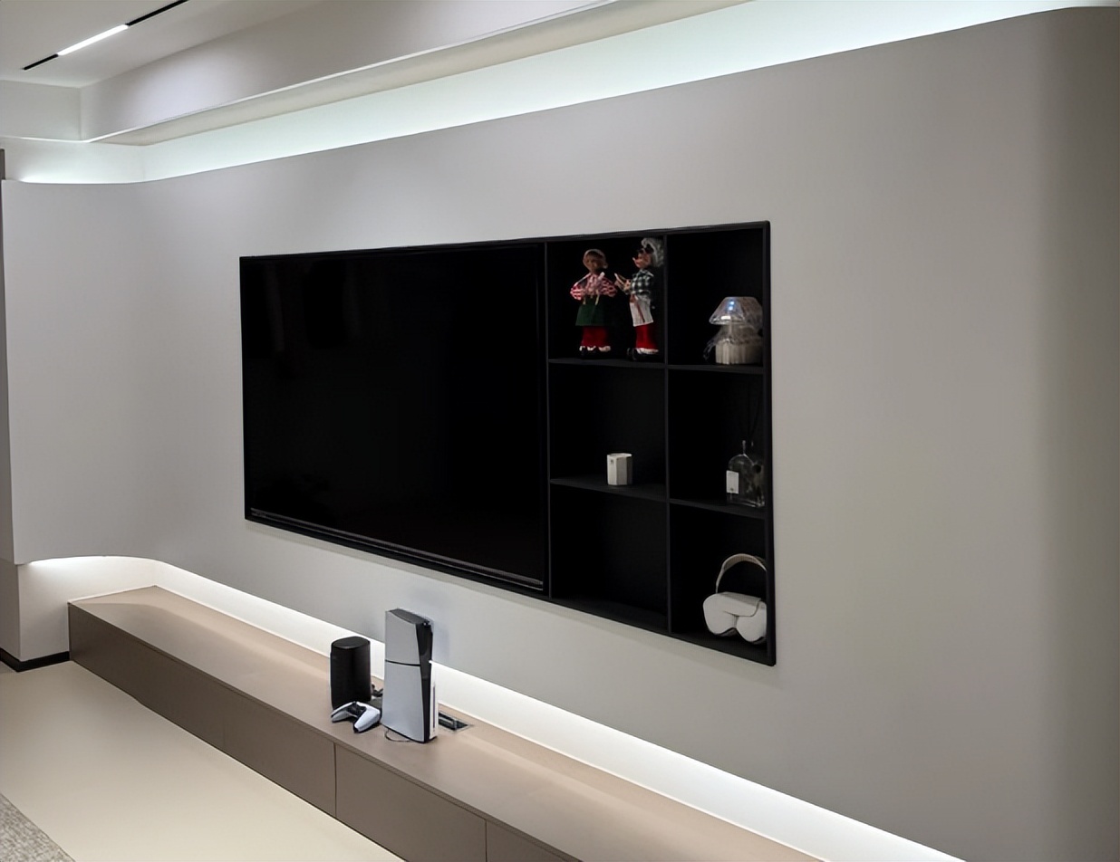 想要家里看着美观、实用,采用普通的极简电视背景墙最好用,比如普通的乳胶漆搭配电视挂墙就行,还能节省很多钱。