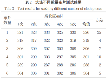 结果见图4。从图4可以看出,随着洗涤温度的提高洗后织物的柔软性能越好,(30±1)℃的洗涤温度也与实际情况相符。因此,选择(30±1)℃为洗涤温度。