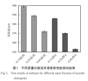 说明在该方法条件下能够显示出相同洗衣液不同质量分数和不同洗衣液相同质量分数下柔软性能的差别,对不同洗涤条件有良好的区分度。