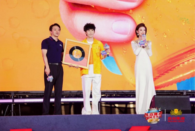 高潮迭起中,燕京倍斯特嘉槟品牌代言人、深受观众喜爱的“人间弹幕机”大张伟活力登场。他以其标志性的幽默风格与现场观众热情互动,盛赞倍斯特嘉槟的“倍儿爽”口感与啤酒节氛围绝配。更令人惊喜的是,大张伟现场宣布将其经典歌曲《倍儿爽》改编版正式授权给燕京倍斯特嘉槟作为广告曲,并与燕京啤酒的高管共同完成授权仪式。在互动环节,大张伟还化身“福利官”,为手机尾号为“711”的幸运观众送上限量“嗝嗝鸭”,并热情推介了现场倍斯特嘉槟打卡点的互动玩法,将现场气氛推向顶点。