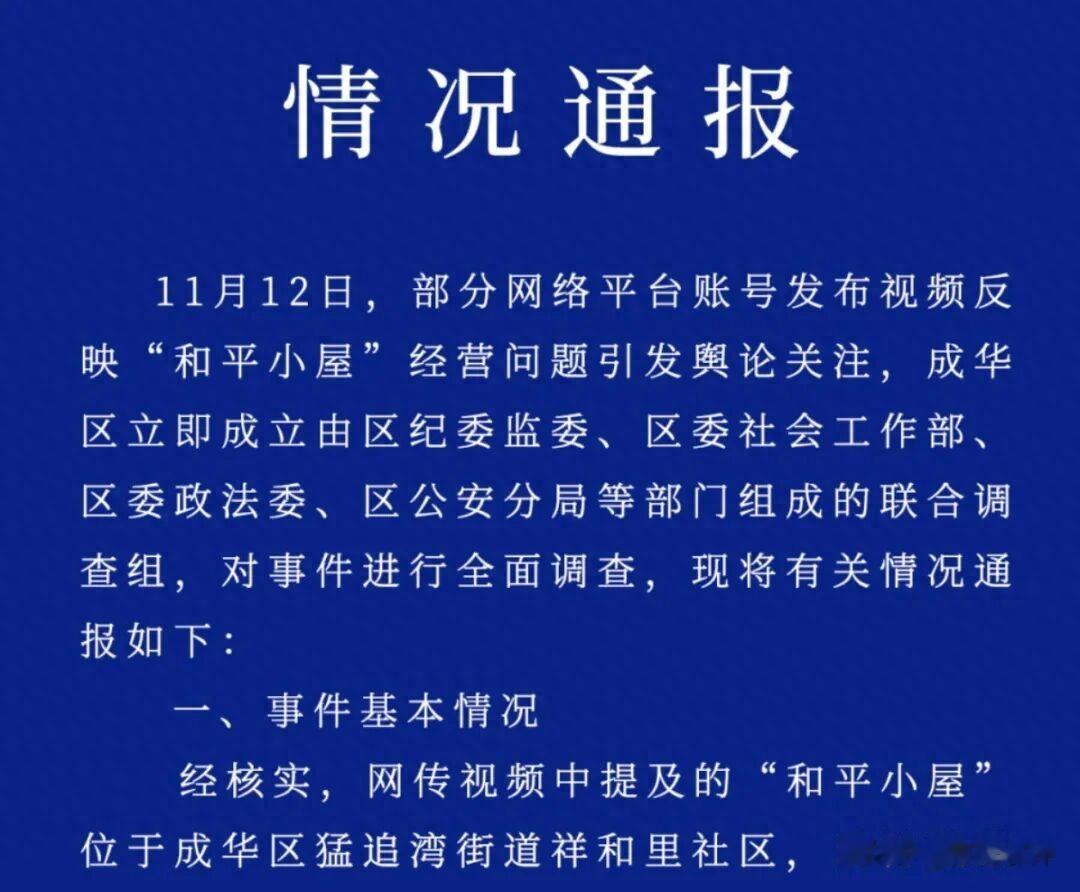 11月13日下午的时候,成都当地的官方终于不再沉默,而就马库斯和平小屋事件,进行了公开的通报。