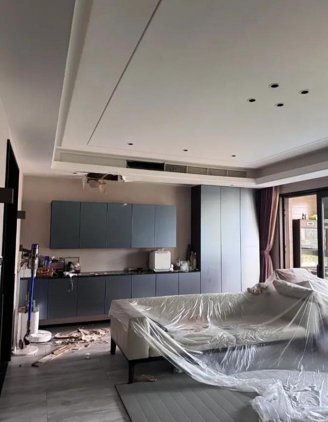 网友:装修最大的坑出现了!突然漏水,墙皮掉了一圈,才刚住进来就出现这种问题,太糟心了!