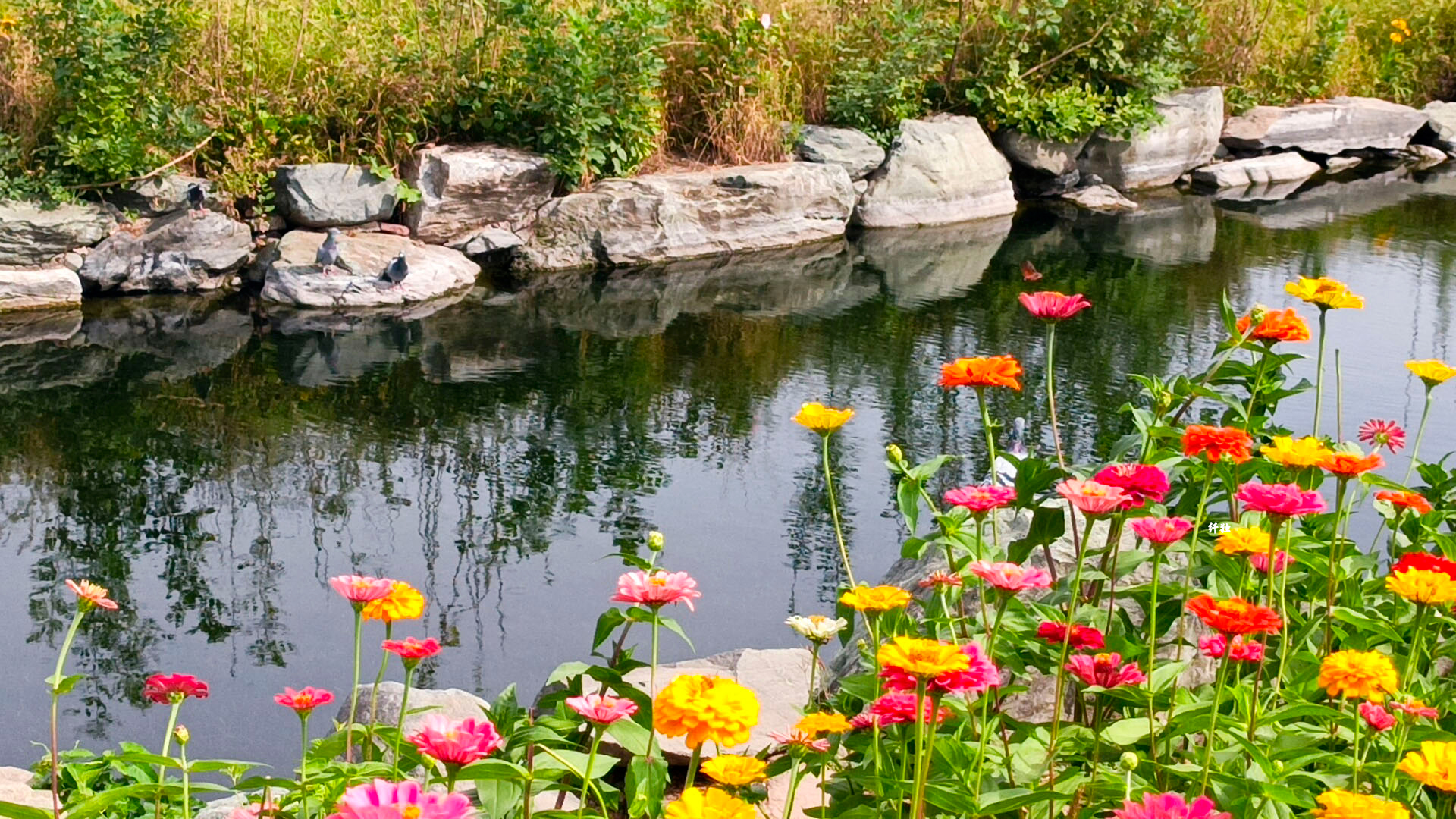 初秋的圆明园花开得好美,还有鱼、鸽子、蝴蝶,这些元素和花一起,让颐和园的秋天更加生动。