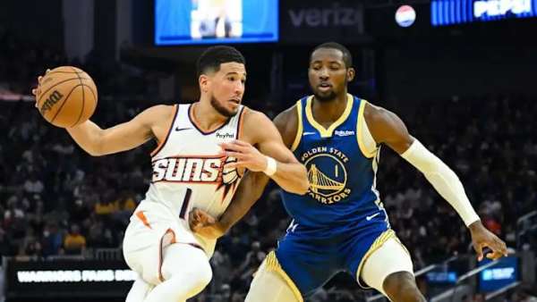 今天布克打勇士,专找弱点下手:攻库明加就多晃动,对TJD就用转身,对穆迪就直接突,勇士无人防得他住。