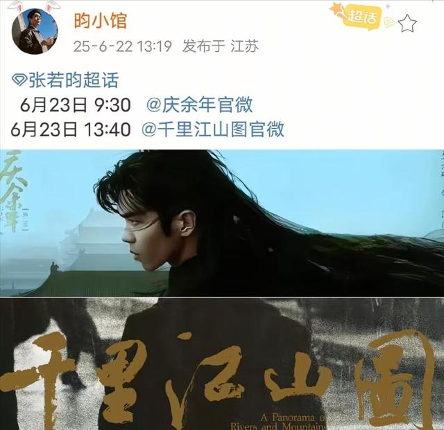 除了《庆余年3》官宣定档的好消息外,张若昀还同时官宣了另一部剧——《千里江山图》。