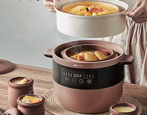 如果你在双11打算为家里的厨房添置一款既实用又高效的炖锅,那么小熊Bear B25T 2.5L电炖锅绝对是一个值得入手的选择。它的2.5升大容量非常适合家庭聚会或者日常炖汤使用,不仅能满足一家人的需求,节假日聚餐时也能轻松应对,帮你快速准备丰盛的汤品或炖品,省时又省力。