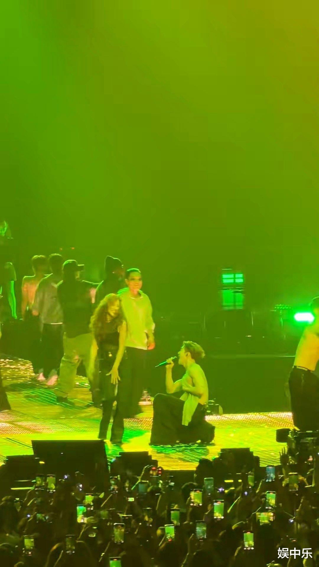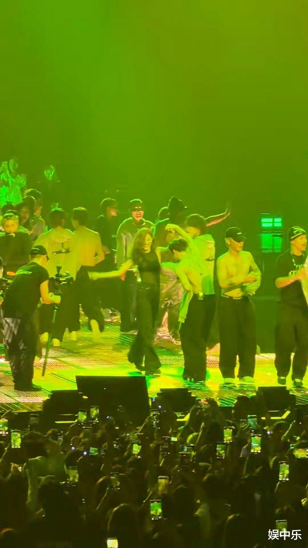 现场简直叠满buff:王嘉尔爸妈首次坐镇观众席,播完妈妈鼓励语音后他直接泪洒舞台(硬汉落泪画面感拉满)但宠粉人设永不塌!镜头扫到陈凯琳时,他特地跨到台边互动,还邀请她上台共舞。姐们全程举手机狂拍,跳得比伴舞还嗨,这哪像三孩妈?分明是女大学生追星成功实录!