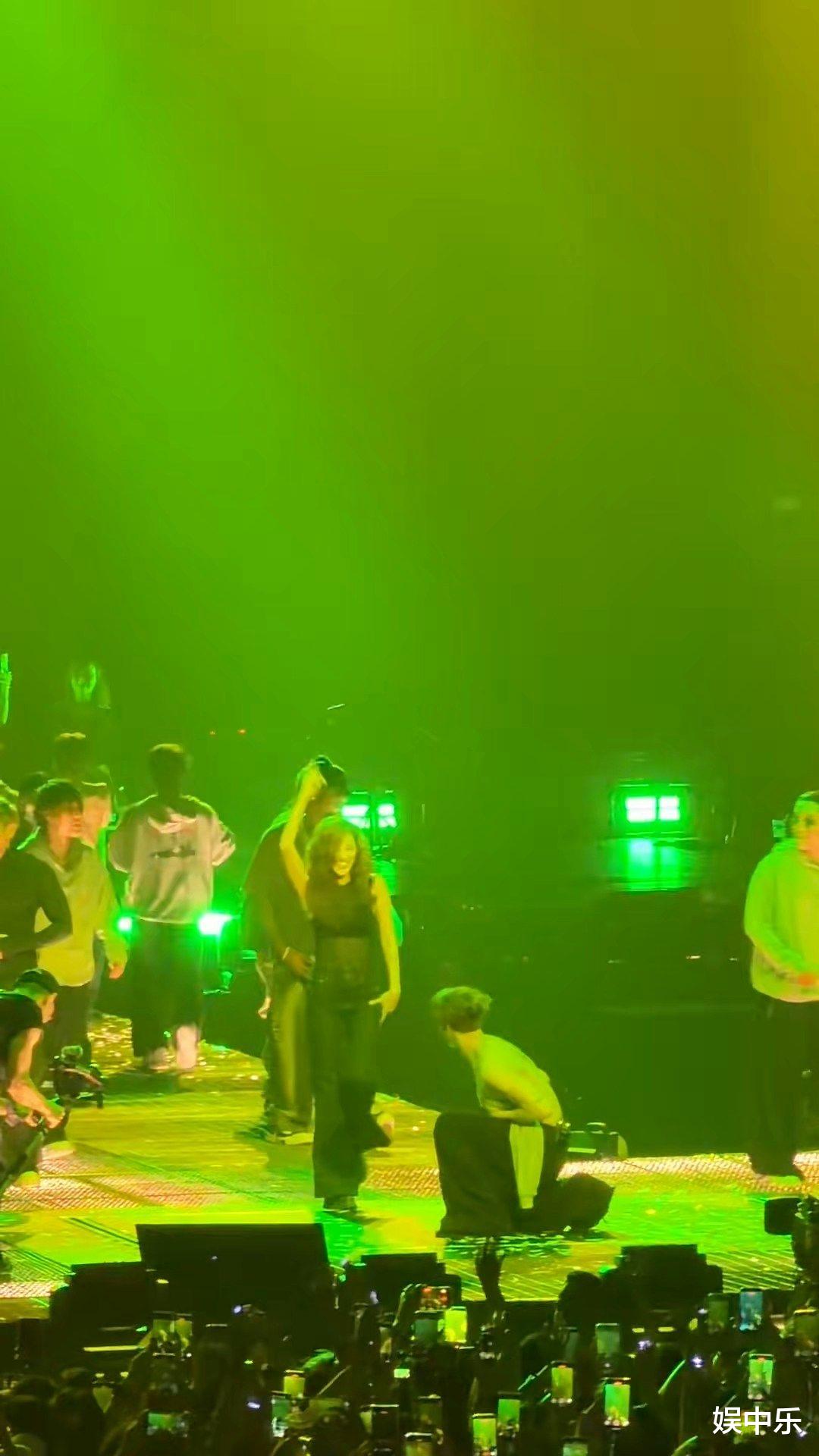 不过姐能冲上台纯属策略到位!她透露演唱会尾声被朋友怂恿溜去台前赌运气,结果电梯一降就被偶像锁定虽然形容那一刻“尴尬但开心到裂开”,但看她和王嘉尔同框跳舞的嗨样……这波操作妥妥的追星教科书啊!