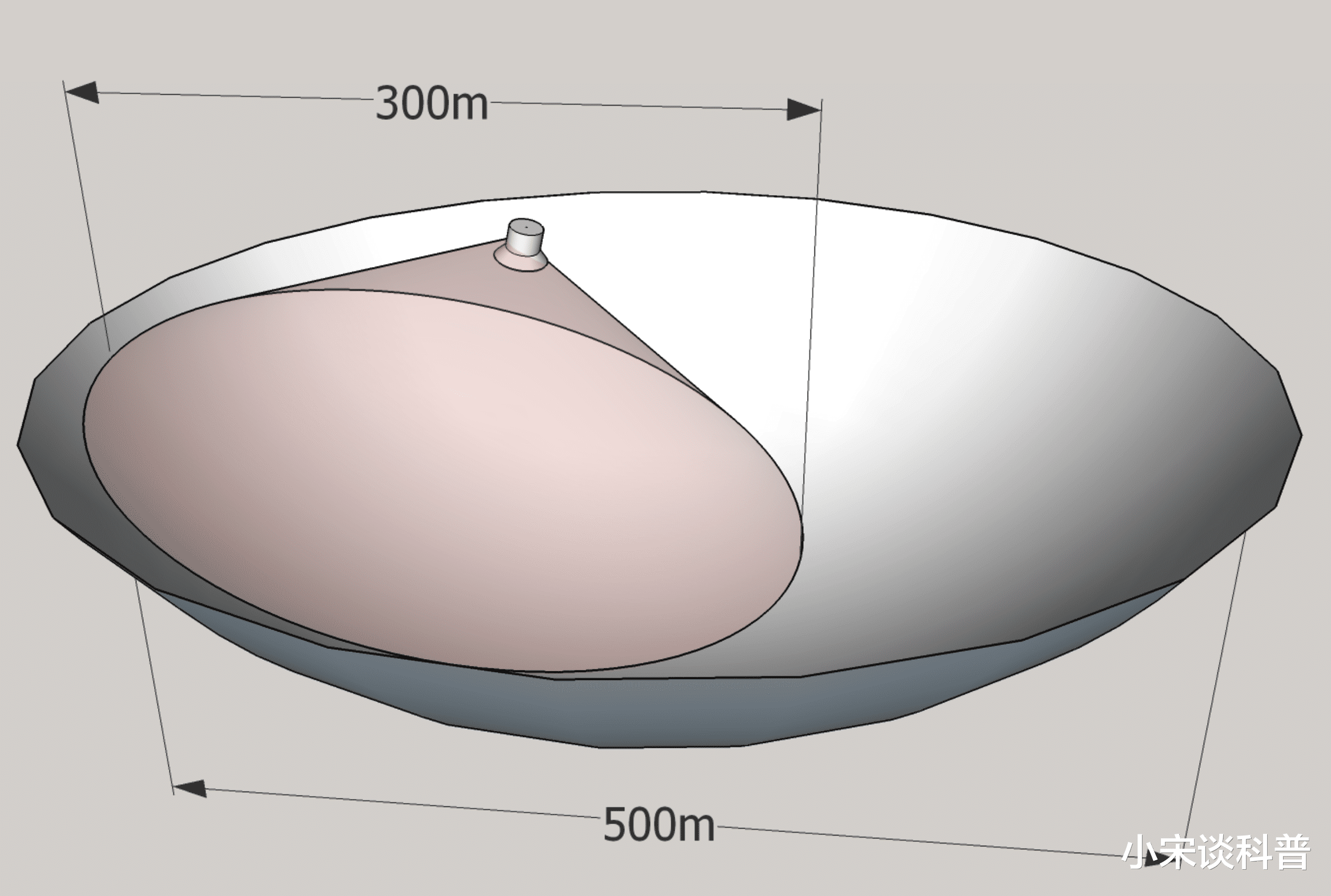 是中国天眼的核心部分,由上万根钢索和4450个反射单元组成的球冠型索膜结构。它的外形类似于一口巨大的锅,接收面积相当于30个标准足球场。