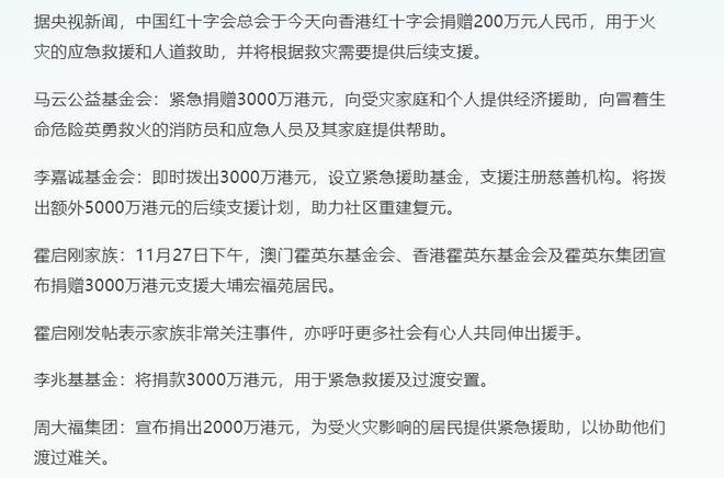 当然,站出来的远不止霍家。香港一些老牌家族和大型企业也纷纷出手,完全可以用“火速响应”来形容。李嘉诚家族捐了8000万港元,李兆基家族捐了3000万港元,郑裕彤家族拿出2000万港元,其他集团和基金不仅捐钱,还贴心地准备了约160间酒店客房,让受灾居民有地方暂住。想象一下,本来可能还在为“今晚去哪儿睡”发愁的人,忽然接到通知说有地方免费住,行李一提就能入住酒店,这种落差带来的安慰,真的是雪中送炭而不是锦上添花。