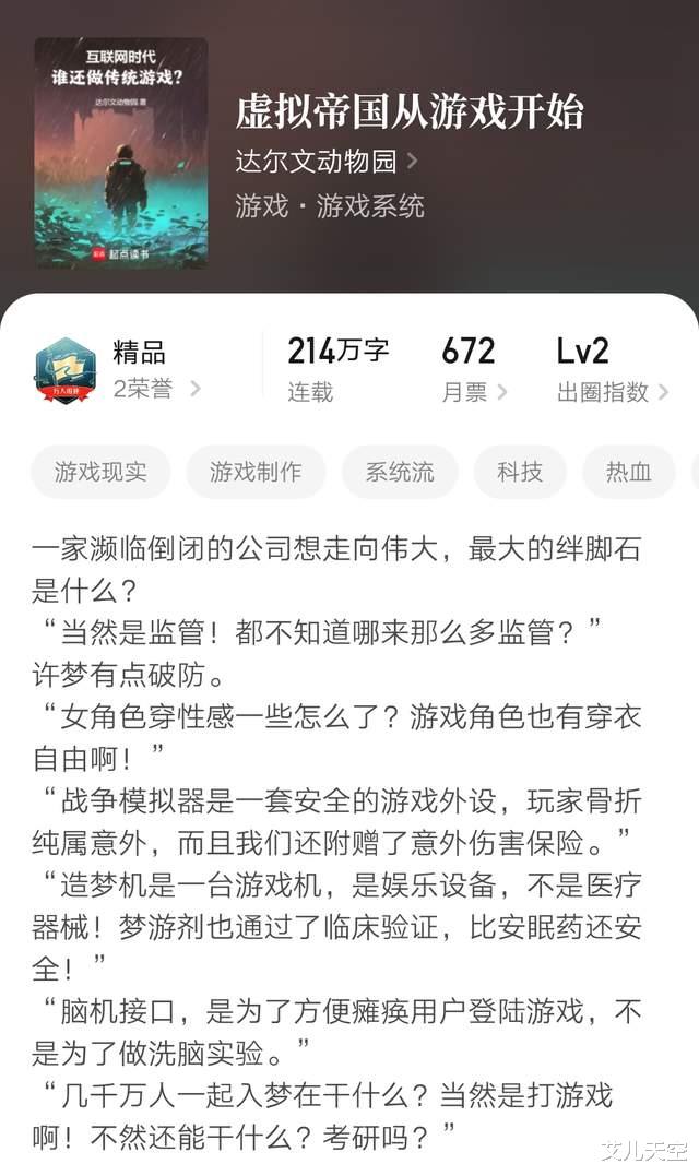 达尔文动物园的这本虚拟游戏黑科技文在今天凌晨完结了。