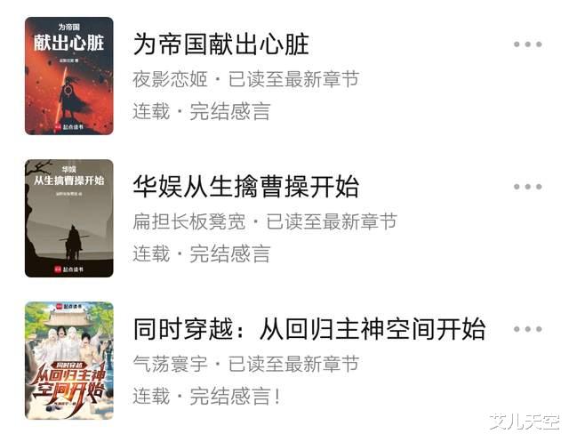 另外除了上面两本小说,夜影恋姬的《为帝国献出心脏》百万字结束,成绩一般,写于挺火的单女主纯爱日常文《温暖的季风》之后,作者说在一个题材上扑了三次了但总算写完了想写的故事念头通达了。