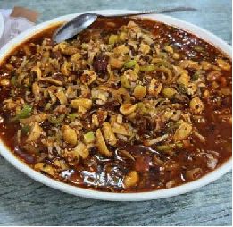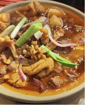 老式炭炉咕噜咕噜冒着泡,热气氤氲间氛围感拉满!随着炖煮,汤汁越来越浓稠,越吃越上头!加一份灵魂萝卜,吸饱牛杂汤汁后鲜甜爆汁,比肉还抢手!最后一定要加一份华丰面绝啦