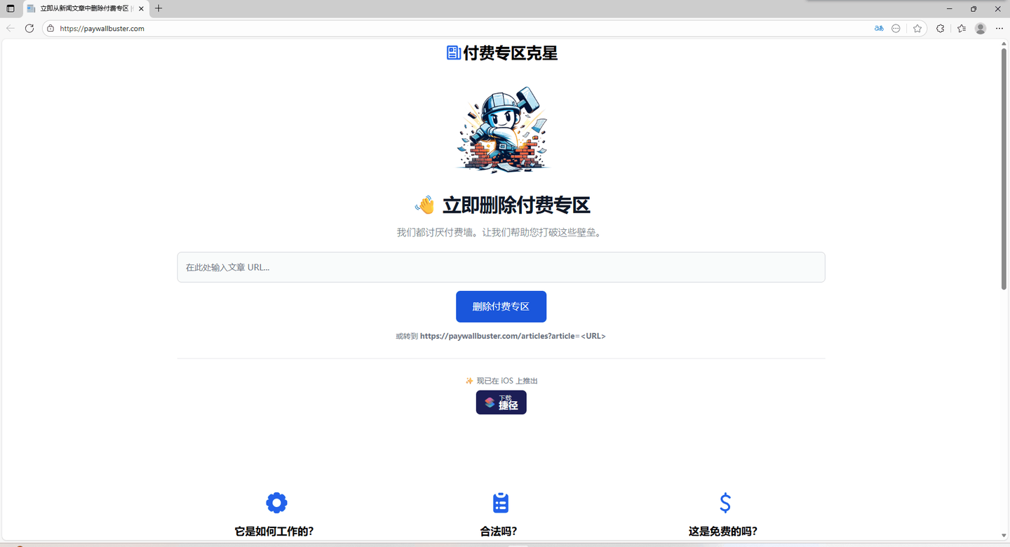 这是一个可以免费破解各大付费网站内容的网站,不用花钱开会员,就能直接阅读原本需要订阅的付费文章。网站的操作也很简单:复制想看的文章链接,粘贴到网站中,点击“移除付费限制”,即可查看完整内容。