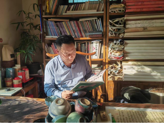 在李俊龙的艺术生涯中,“公益”是不可或缺的一部分。凭借集云轩的平台优势与自身的专业影响力,他在登封开放大学、登封社区学院、登封老年学院开设公益成人书法讲堂,每年开展春秋两季不低于24课时的书法公益课,这样的讲堂一办就是六年,切实将书法艺术的种子播撒到更广阔的土壤中。教学过程中,他耐心讲解笔法、结构、章法等基础知识点,从握笔姿势到临摹技巧,皆亲自演示、亲自指导。他常说:“择一事,爱一生。写字是修身养性的过程,要长期不懈地坚持。”经过他三个月的系统培训,从入门的一窍不通,到独立完成一幅作品、参加汇报展览,学员们的热情与进步,让李俊龙感受到了艺术传承的价值和初心。