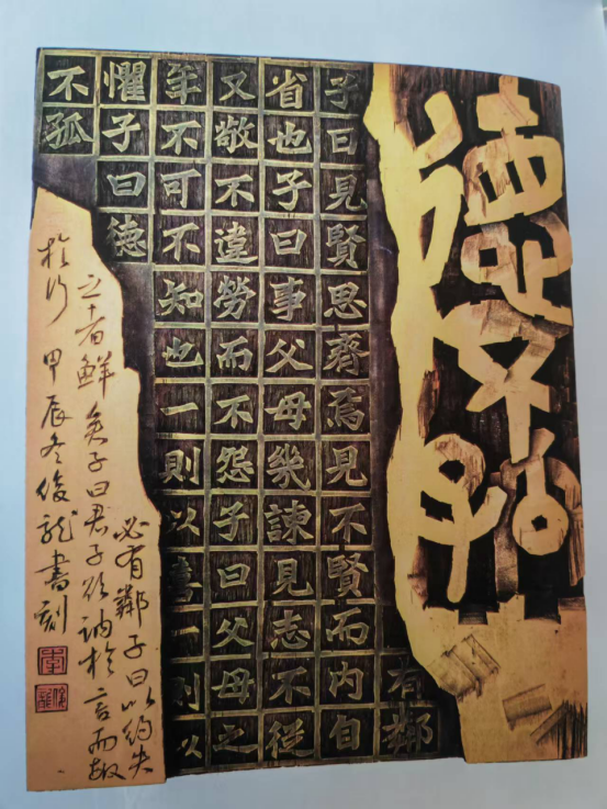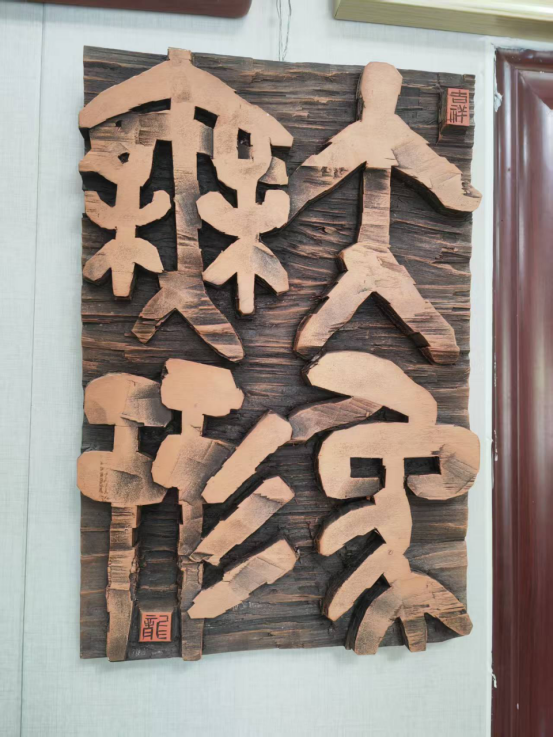 没有专业院校系统培训,李俊龙在“勤奋好学”中汲取营养,不断完成书法与篆刻道路上的蜕变。为了能够让技艺更加精进,他多次走出登封,拜访名家,并主动参加中书协、省书协举办的培训班,得到了米闹、姜宝平、刘颜涛、王军杰、薛明辉、段琳卿等知名书家指教,在笔法、章法上实现了质的飞跃。学习路上,他以古为师,涉猎诸体,擅长楷书、行书、篆书、篆刻、刻字等,遍临名家名帖,最终形成了兼具传统韵味与个人特色的风格。对篆刻艺术的探索,同样充满了执着与坚守,他从汉印入手,潜心钻研传统篆刻的技法与精髓,起初全凭自学摸索,在一方方印石上反复雕琢,熟悉阴刻、阳刻的不同韵味。后来,他有幸师从河南省书协刻字委员会副主任王军杰老师,系统学习刻字技艺,不仅掌握了方寸之间的布局之道,更结合龙门石窟元素进行创作,突破传统,通过阴刻阳刻的交替、色彩层次的搭配,让作品兼具立体感与视觉冲击力。他的刻字作品,既有汉印的古朴厚重,又有现代设计的灵动创新,成为其艺术生涯的重要特色。2025年“山青花燃 游刃古都”系列展览中,他的作品先后在郑州、邢台、开封三地展出,彰显着他扎实的专业功底与独特的艺术视角。