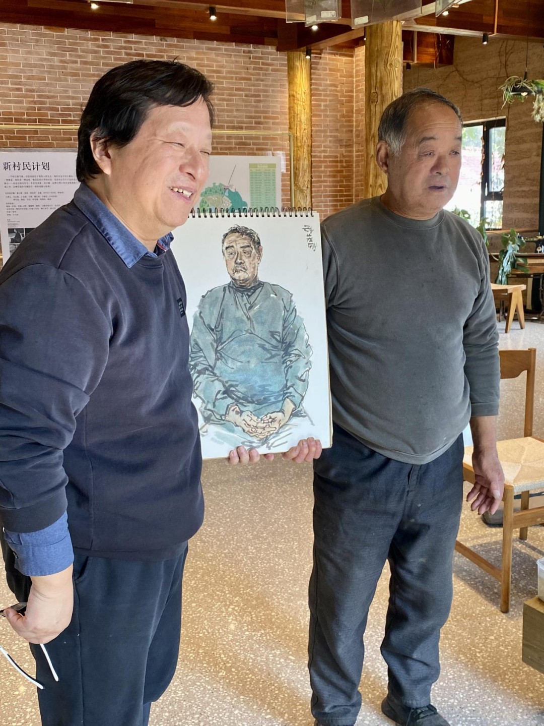美丽庭院里,原住村民成了南京市文联副主席、南京市美术家协会主席徐惠泉的“写生素材”,水墨勾型,色彩绘神,转眼间,村民的神态与轮廓便跃然纸上。专注于人物写生的徐惠泉介绍,与原住民交谈,更能感知到村里人的精神气质与生活温度。“这是一个有灵气的村落,村民的这种本真状态正是艺术家要记录的时代缩影,这正反映着我们时代的百姓安居、人民幸福的状态。”徐惠泉表示。