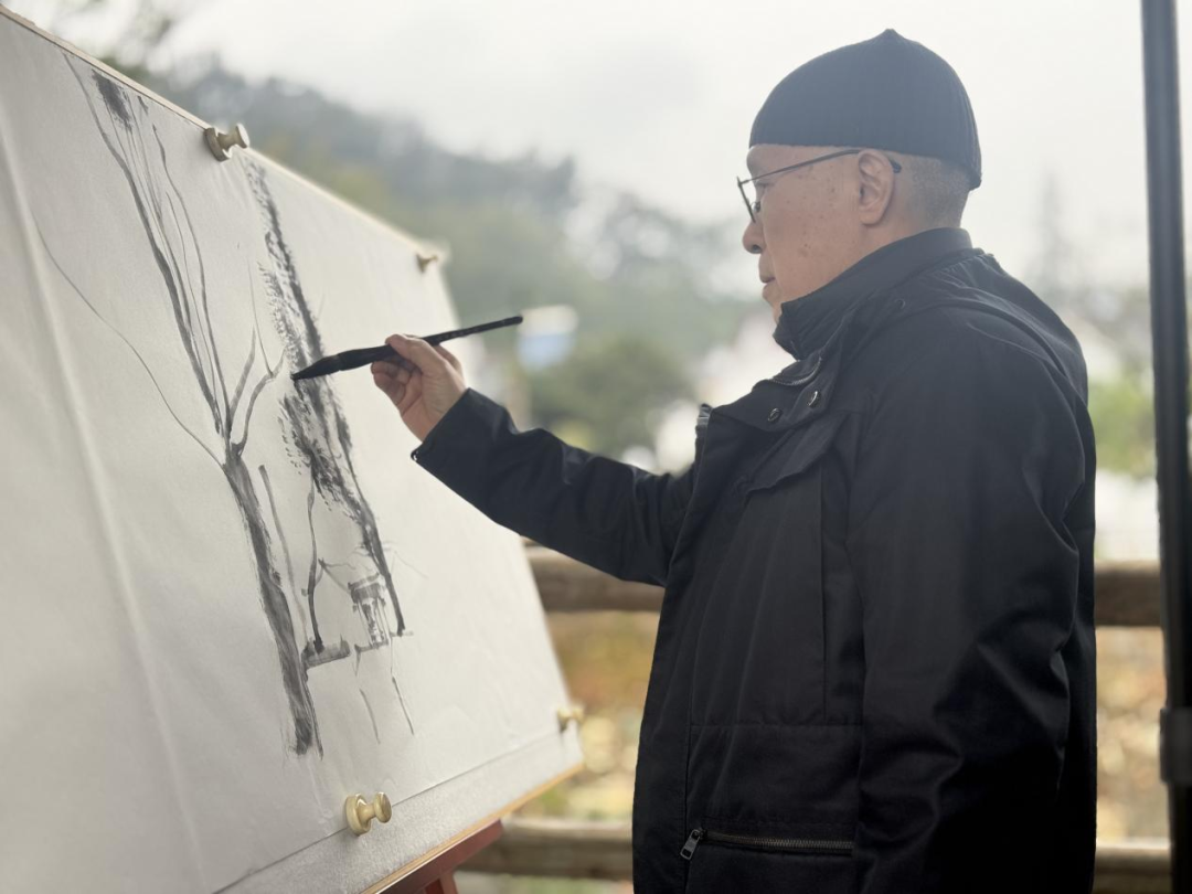 响堂的蝶变,常常来写生的周京新看在眼里,也落在了笔上。连续两天,周京新在此创作多幅速写与水墨作品,并通过直播向公众传递浦口诗意之美。“既有田园韵味,又有山林野趣,越来越多的人将响堂作为固定写生点,也体现了这里人文、山川、田园的美好魅力。”周京新说道。
