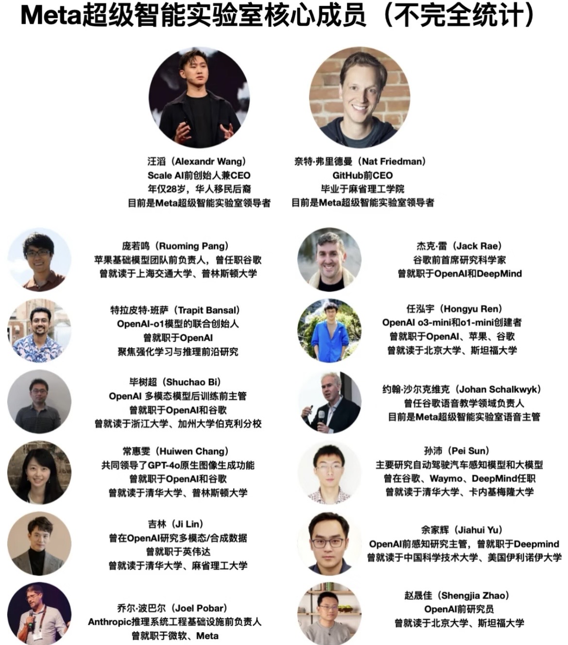 今年夏天,Meta掌门人扎克伯格宣布组建超级智能实验室时,公布的11人核心团队名单让人眼前一亮——这11位AI研究员全都是移民,其中有7张我们熟悉的中国面孔。