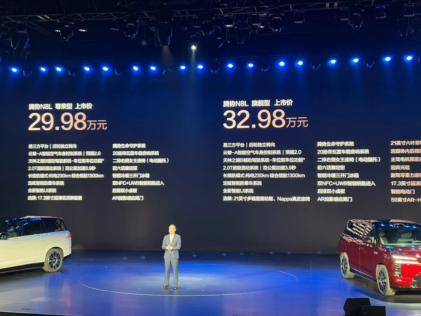 腾势汽车换帅了,这次李慧上台气势十足,势必要把腾势N8L打造成为高端爆款车型,整个发布会下来,确实收到了不错的反馈,尤其是腾势APP居然崩溃了,说明很多人都开始关注这款车了,订单转化率应该很不错。刚好月底发布,11月份就开卖,就能看到成绩了,对于腾势来讲,是检验产品的好时候。腾势N8L这次作为战略车型,已经输不起了,前面有太多的型号失败了,比如N7,一开始很看好,现在销量几乎忽略不计了,Z9系列,也是不温不火,N9半年改款,都说明了问题。输不起,在我看来,有多层含义。第一层含义,腾势内部输不起了,腾势作为比亚迪的高端品牌,给到的资源和技术是最多的,但回馈的效果是最差的,再输真是没脸见人了。第二层含义,面对兄弟品牌,海洋网和方程豹的改款车型和新车型都成功了。比如海洋网的海狮06成为了宋PLUS的平替车型,可以说是无缝对接,上市首月销量就突破了3万台,接着每个月都是3万台,这样一来,宋PLUS就可以功成身退了。方程豹品牌也一样,在推出钛3和钛7后,方程豹的总销量从10万到20万,只用了5个月,钛7更是一车难求,短短一个月销量突破11000台,而且消费者选择的基本都是顶配版,四驱Ultra版,售价21.98万。这就是绝对的产品实力。钛7的火爆,直接把方程豹的销量提升到一个新的高度,也盘活了其他车型,让比亚迪的新势力有了活力,有了自己的个性化之路。反观腾势,依靠D9苦苦支撑,腾势急需一款火爆车型,而且要相当火爆才行,一定要越级的存在才行,一定要是同级别中最值得买的才行,于是,N8L来了。29.98万的腾势N8L,几乎没有短板,很均衡的一款车,这个价位,比竞品问界M8便宜了10多万,相当于是错位竞争了。相比问界M8,无论是在车身尺寸方面,还是动力方面,都要领先M8,特别是N8L的三电机四驱,百公里加速只要3.9秒,综合素质都要比M8强不少。得益于易三方的加持,也算是腾势的独家核心技术了,转弯半径跟微型车海鸥差不多,相比竞品出色太多了。另外还可以进行圆规调头,在窄路上有不错的通过能力,154km/h高速横风不侧翻,180km/h高速爆胎不失稳,210km/h高速避让(鱼钩测试)不侧翻。科技智能方面,N8L搭载了天神之眼B端到端智驾方案,其实天神之眼每个月的数据量都是很大的,行驶数据里程超1亿公里,通过玄机大模型的海量数据训练,还能实现智驾兜底,说明比亚迪的智能驾驶还是很不错的,至少能进到前三甲。底盘技术方面采用了前双叉臂+后五连杆悬挂,云辇A+路面预瞄2.0,车身关键区域采用2000MPa的热成型钢,主动安全和被动安全都拉满了。总体来说,这些配置加起来,只需要30万,我想,这已经是腾势给出的最大的诚意了,腾势能做的也就这些了,从APP的反应情况来讲,加了10倍服务器还崩溃,说明这款车的受欢迎程度已经八九不离十了。