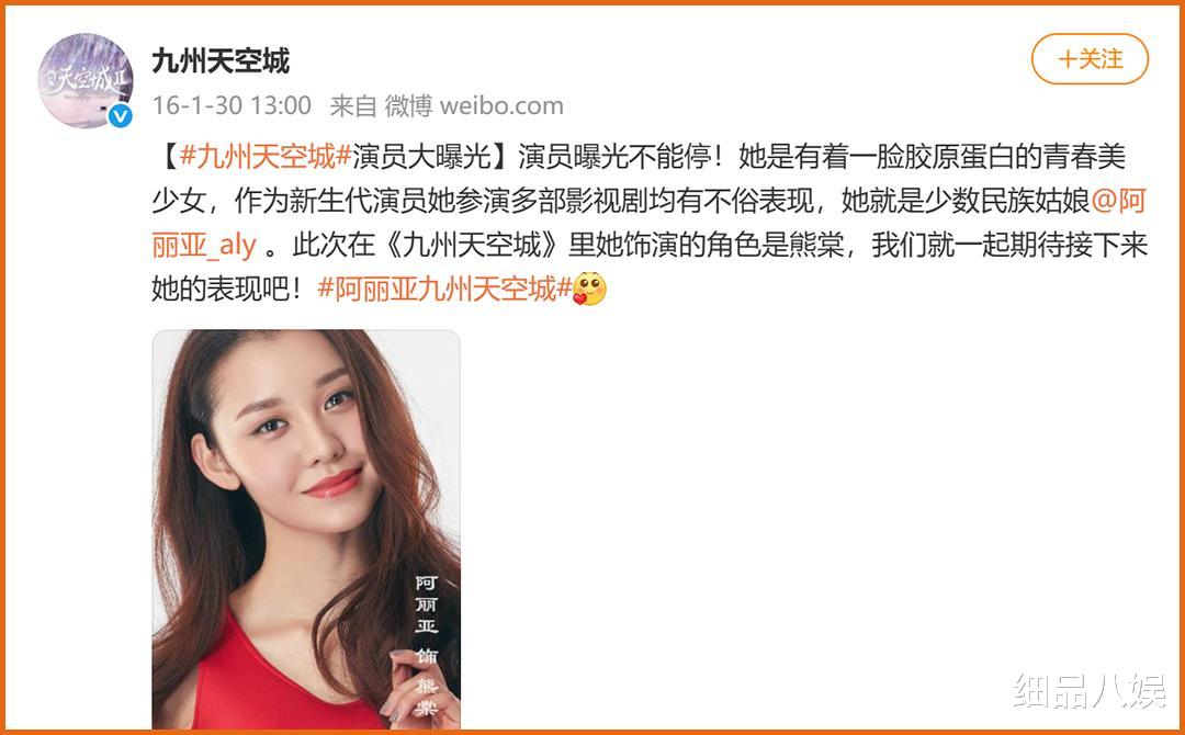 这就要提到2016年1月24日开机的《九州天空城》了,阿丽亚饰演熊棠。