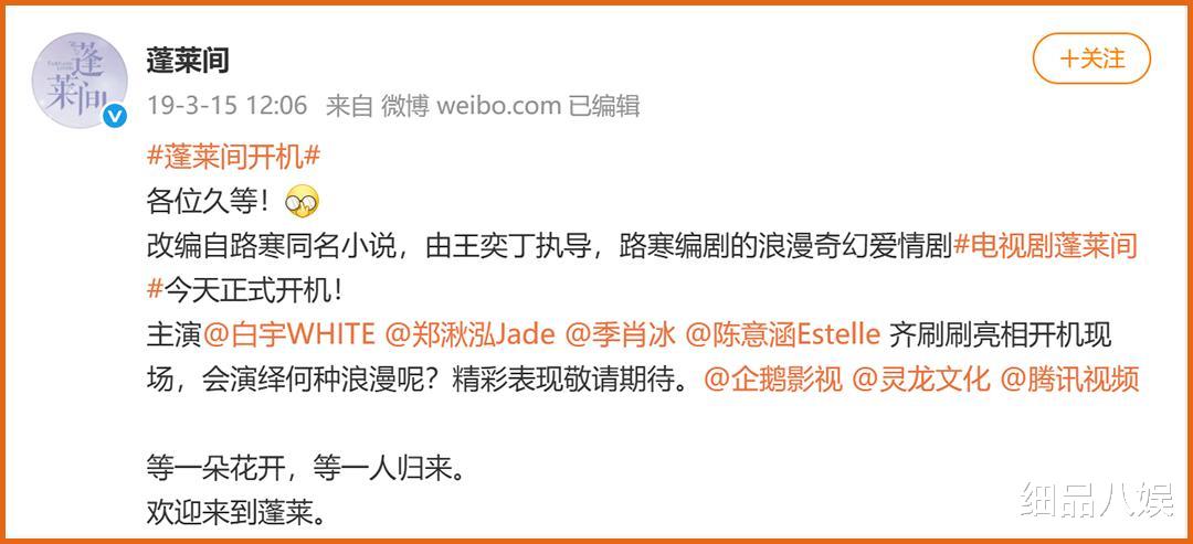 是的,您没看错,《蓬莱间》《沉默不语的顾小姐》的开机时间只相隔一个月出头,这就意味着阿丽亚在同时拍两部戏。
