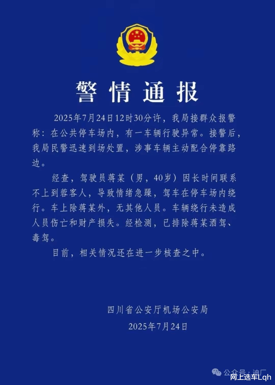 更让人费解的是成都天府机场的舆情;天府机场那场闹剧,其实几句话就能说明白,某天在天府机场有台小车一直绕圈圈,后来查明是因为司机没等到要等的人,心中烦躁不已,兜圈解闷,就这么简单的一件事,经过一段掐头去尾的小视频传播,画面中比亚迪车辆停在机场跑道旁,尚未等官方调查结果,“刹车失控” 的定性已铺天盖地,时间点也太巧了!刚好卡在比亚迪1300万辆下线和新车发布会。