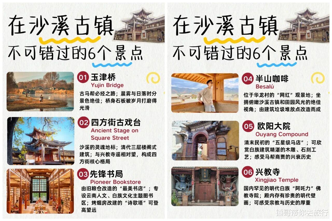 ✅交通攻略:可先乘高铁到大理站,再转乘汽车前往沙溪古镇;古镇内适合步行游览。