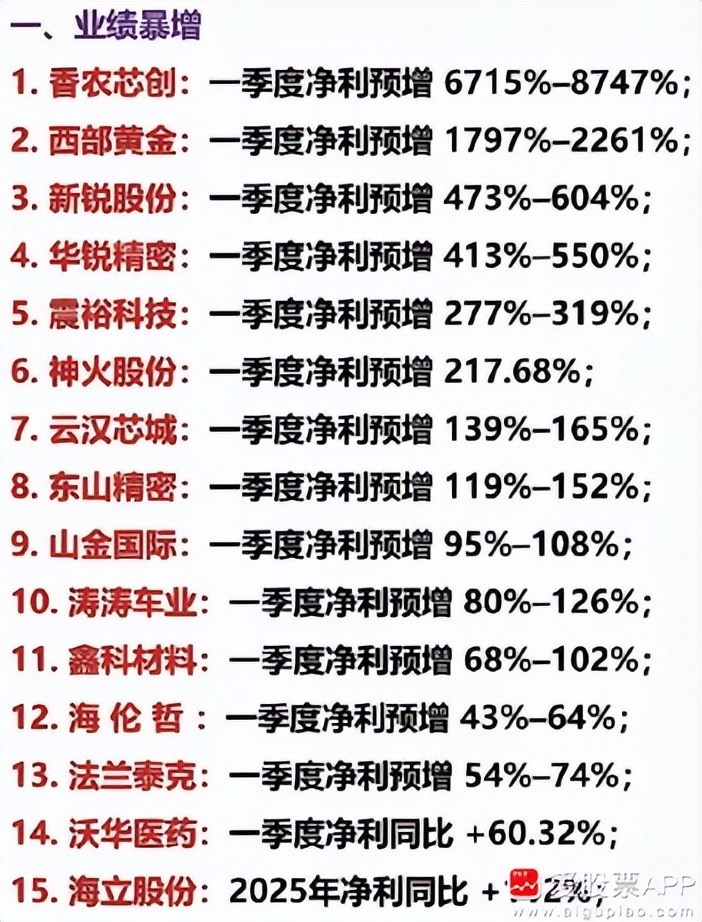 还有热门科技股:香农芯创:一季度净利同比预增6715%~8747%;天孚通信:2025年净利润同比增长50%;东山精密:一季度净利同比预增119%-152%。