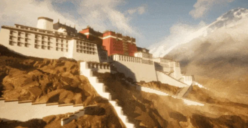 体验过程中,观众戴上VR头显,就能乘坐马头船,在悠扬的鹰骨笛声中,进入位于红山之上的布达拉宫。在白宫与红宫内,在1:1还原的西藏人文自然景观间,开启一场视觉体验。