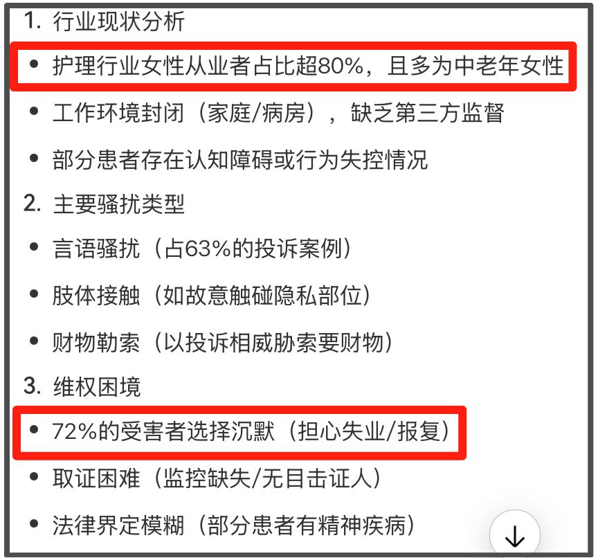 有知情的网友说,护理老人的女护工被骚扰是常有的事情,是这个行业不公开的奇葩现象。此前媒体多次报道过老人骚扰女护工,女保姆的事件。
