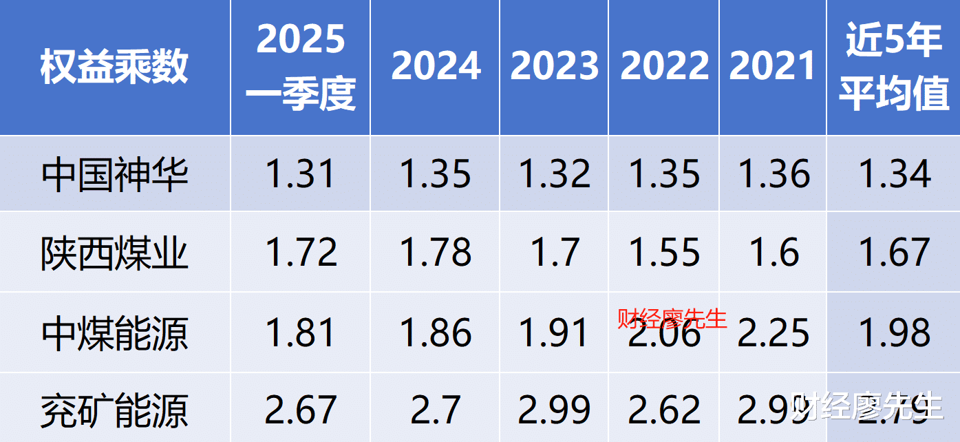 权益乘数:兖矿能源>中煤能源>陕西煤业>中国神华