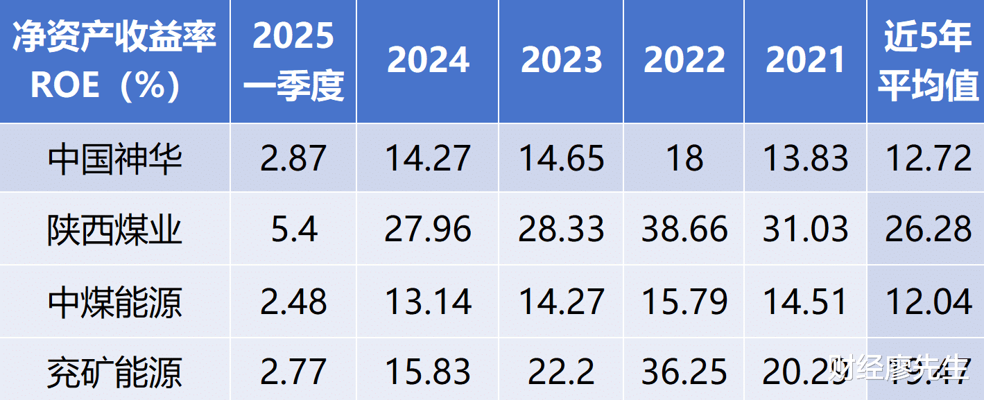 第一名是陕西煤业,公司的净资产收益率常年维持在25%以上,相当优秀,遥遥领先,实力毋庸置疑