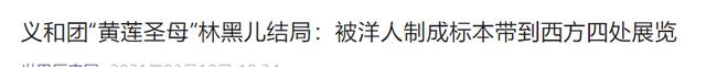 世界历史网——义和团“黄莲圣母”林黑儿结局:被洋人制成标本带到西方四处展览 2021-03-10