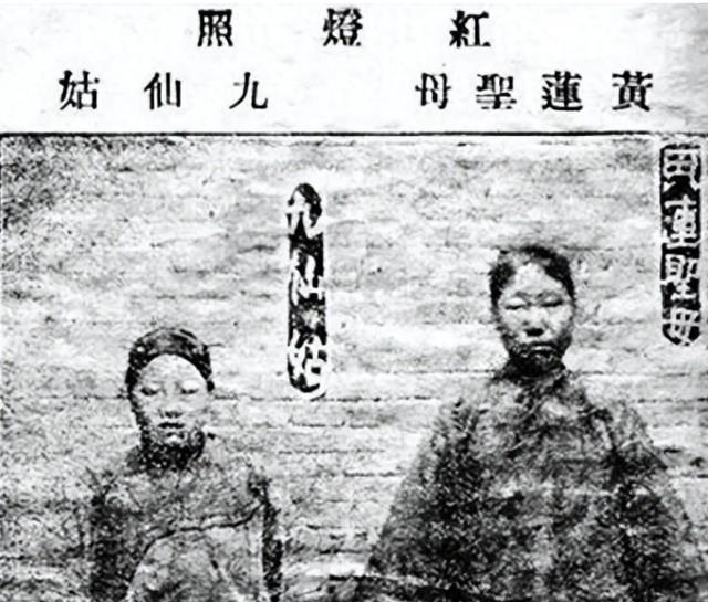 这张照片中就是“黄莲圣母”被八国联军俘虏之后拍摄的,在她身边站着的就是同时期被抓捕的成员“九仙姑”,这张照片也是她留在世上最后的一张同时也是唯一的一张影像资料。