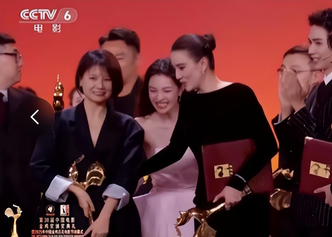 不过,也有网友慢速观看CCTV-6直播画面,认为钟楚曦当时站的应该是第二排,她还用力把《好东西》导演邵艺辉推到了第一排,让她站到宋佳右手边。