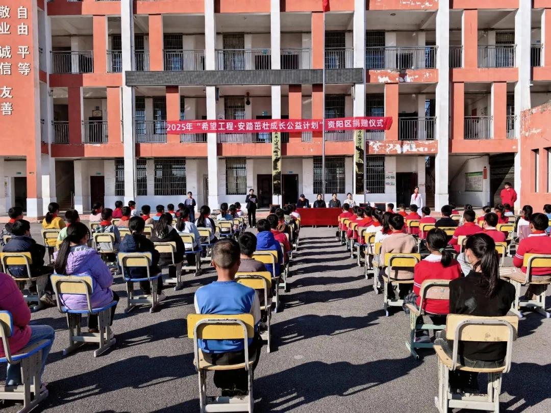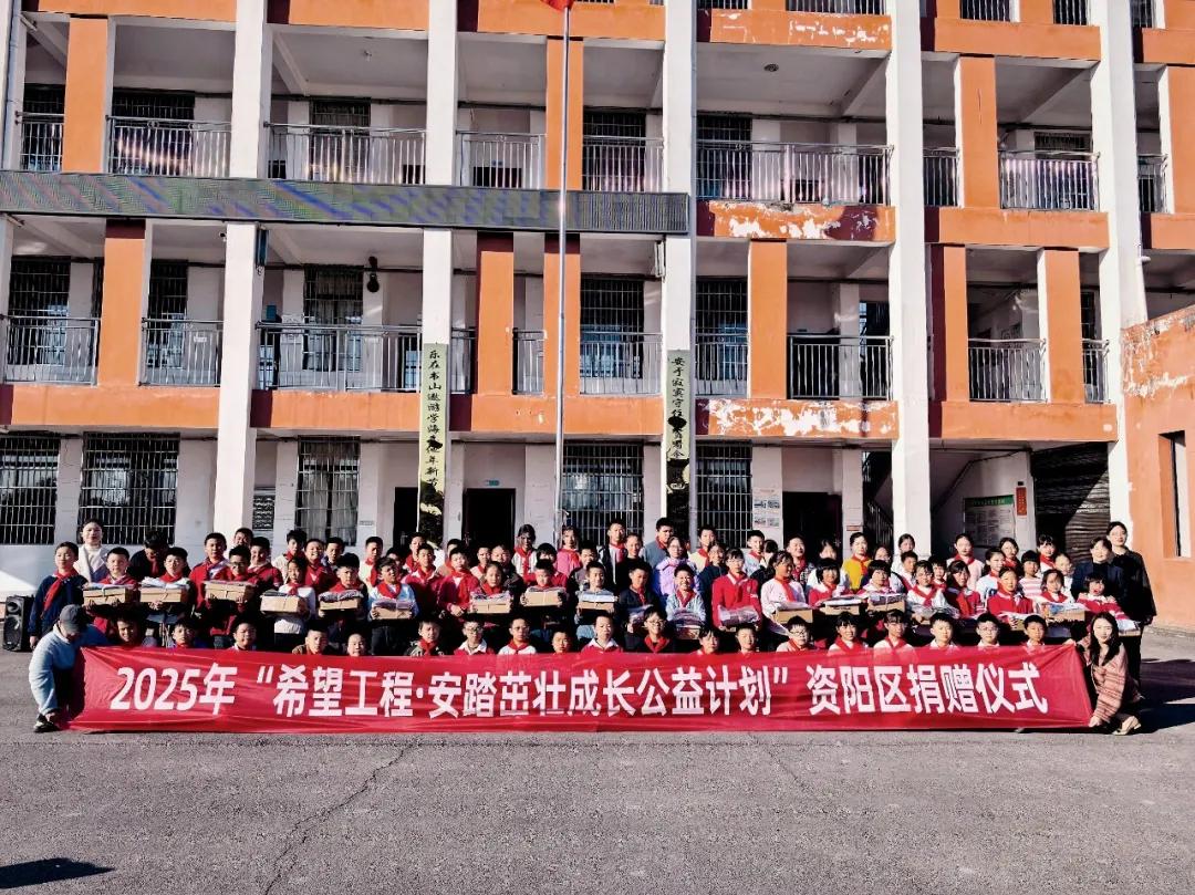 11月19日,2025 年“希望工程·安踏茁壮成长公益计划”资阳区捐赠仪式举行,共青团资阳区委为张家塞乡下资小学全校师生发放了103套安踏茁壮成长公益装备包,用实际行动传递社会关怀,助力青少年快乐成长。