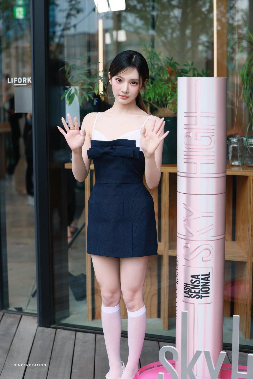 咱就是说,宁艺卓最近出席美宝莲活动的造型,那叫一个让人移不开眼!一身藏蓝吊带裙,胸前还有个大蝴蝶结装饰,又甜又欲,搭配白色中筒袜和珍珠装饰的鞋子,纯欲风直接拉满,简直是行走的衣架子,这穿搭和身材气质的融合度,我愿称之为 “绝绝子”。