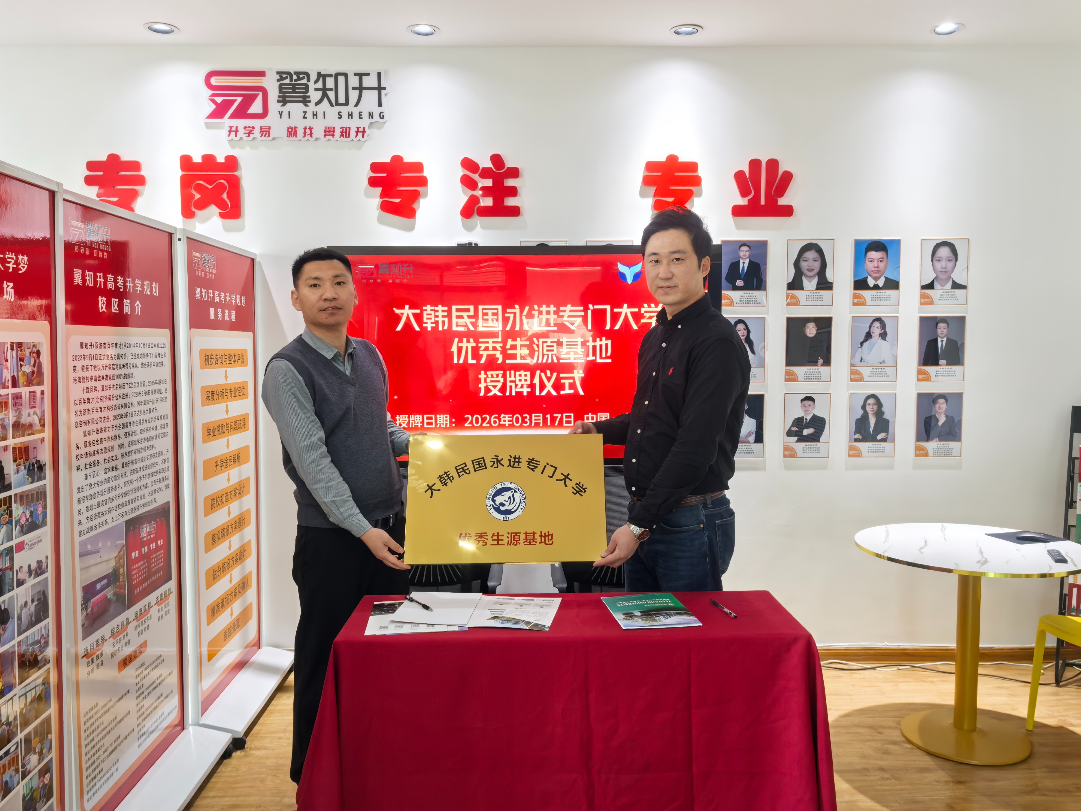 这意味着,翼知升教育正式成为上述两所韩国高校在兰州的官方合作生源基地,将承担起优质生源的选拔、推荐及前置培养工作。屿豚教育作为两所高校在中国西南及西北地区的官方授权合作伙伴,全程主导并见证了此次授牌。
