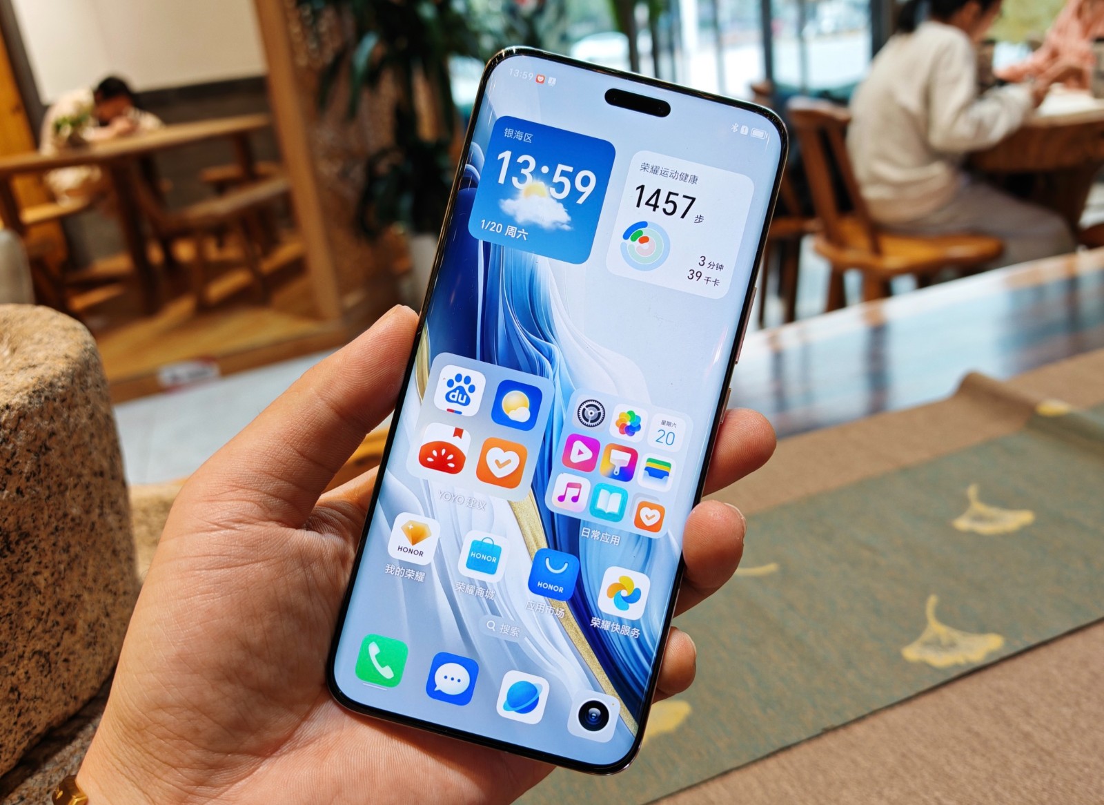 屏幕表现也可圈可点,悬浮式曲面屏的设计做到了1~120Hz LTPO自适应刷新率。为了实现更好的显示效果,给到了1.5K分辨率以及4320Hz的超高频PWM调光,在各种太阳光下或者是强光照射的情况下,都能轻松识别屏幕内容,而它的信号表现也获得了消费者的一致好评,给到了荣耀自研的C1+信号增强芯片。在各种弱网的区域都能更加高效的连接5G网络,没有地面信号的时候,也可以通过鸿燕卫星通信功能,拨打电话或者是收发短信,应急的时候也变得特别方便。