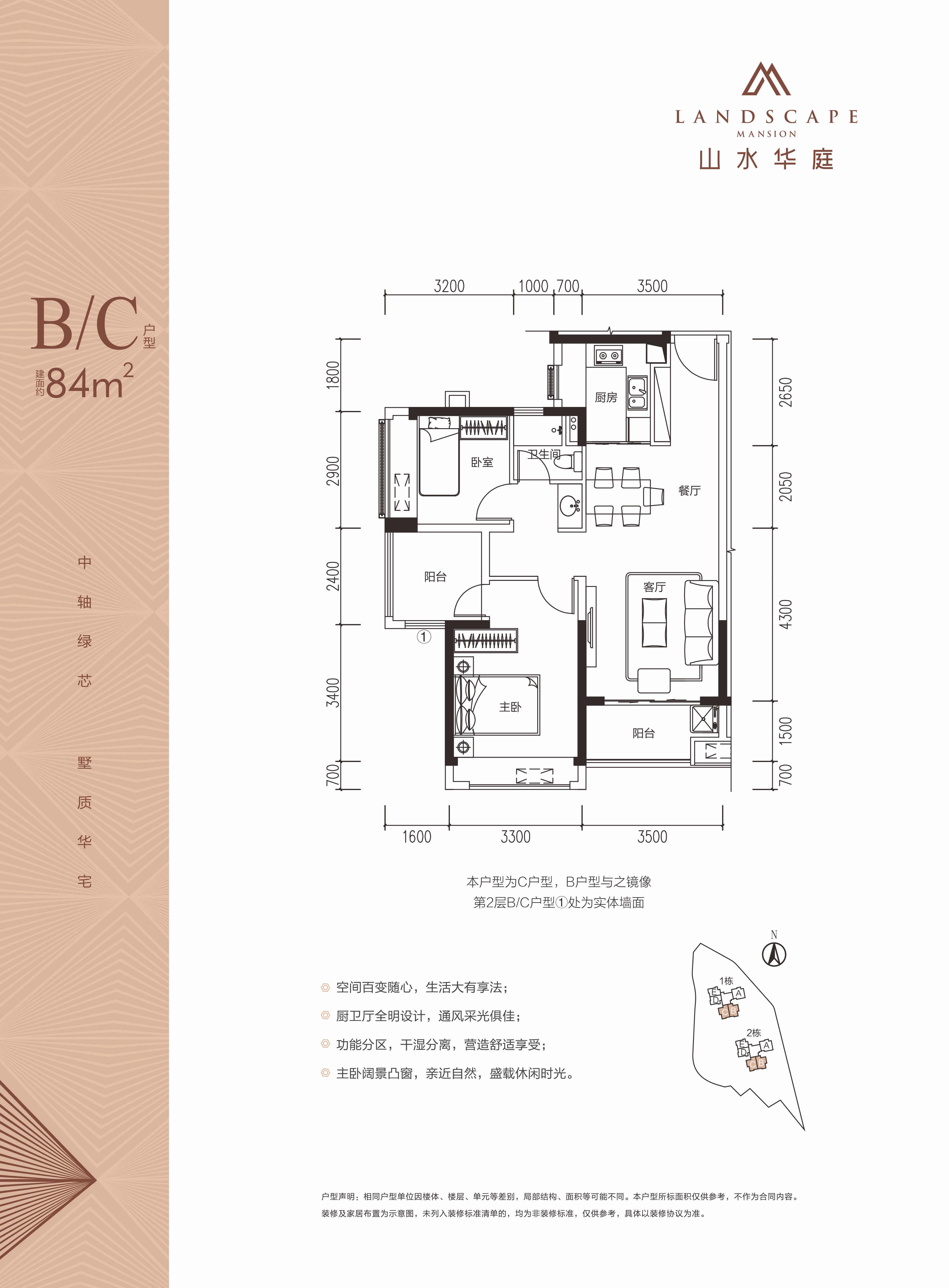 面积段约:66㎡、84㎡、104㎡住宅