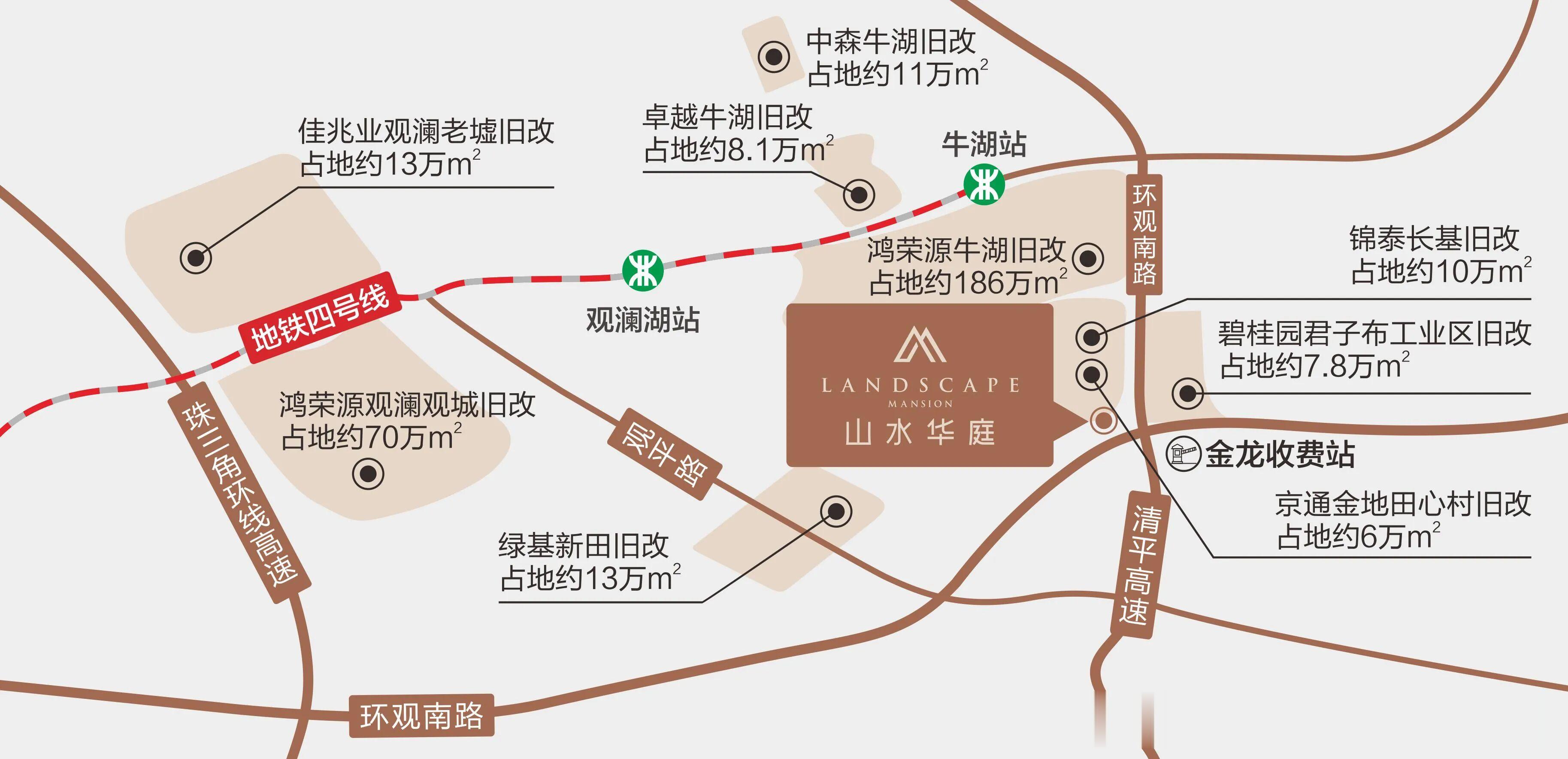 紧临金龙收费站,快速对接清平高速,距红岭北路约16公里,快速抵达福田、罗湖中心区;经清平高速转南坪快速,直抵南山;毗邻地铁4号线首发牛湖站,一线直达深圳北、福田会展中心,通勤便捷无忧。