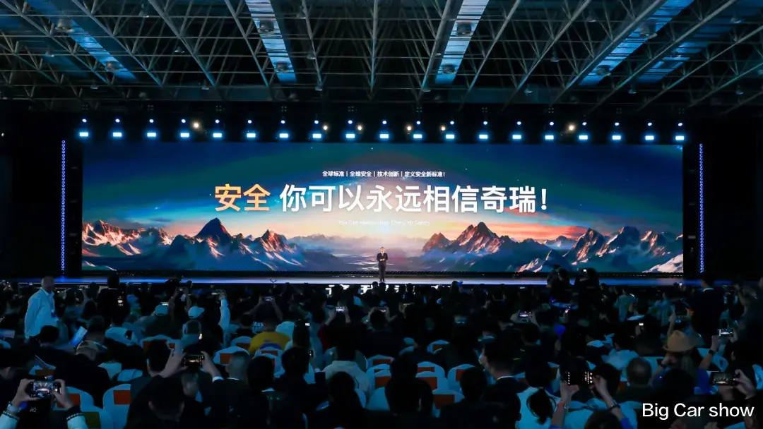 就像这次大会上惊艳的纵横G700,它能横渡长江,靠的正是“技术货架”里的IP68级防水、双动力冗余等技术。对比路虎揽胜(IP67防水、涉水900mm)、卫士OCTA(涉水1000mm),纵横G700核心零部件全达IP68 级,970mm 涉水深度实现从“过积水”到“渡江河”的革命性跨越。目前奇瑞已有54款车型获全球五星安全评价,正朝着“世界最安全新能源车企”的目标迈进。