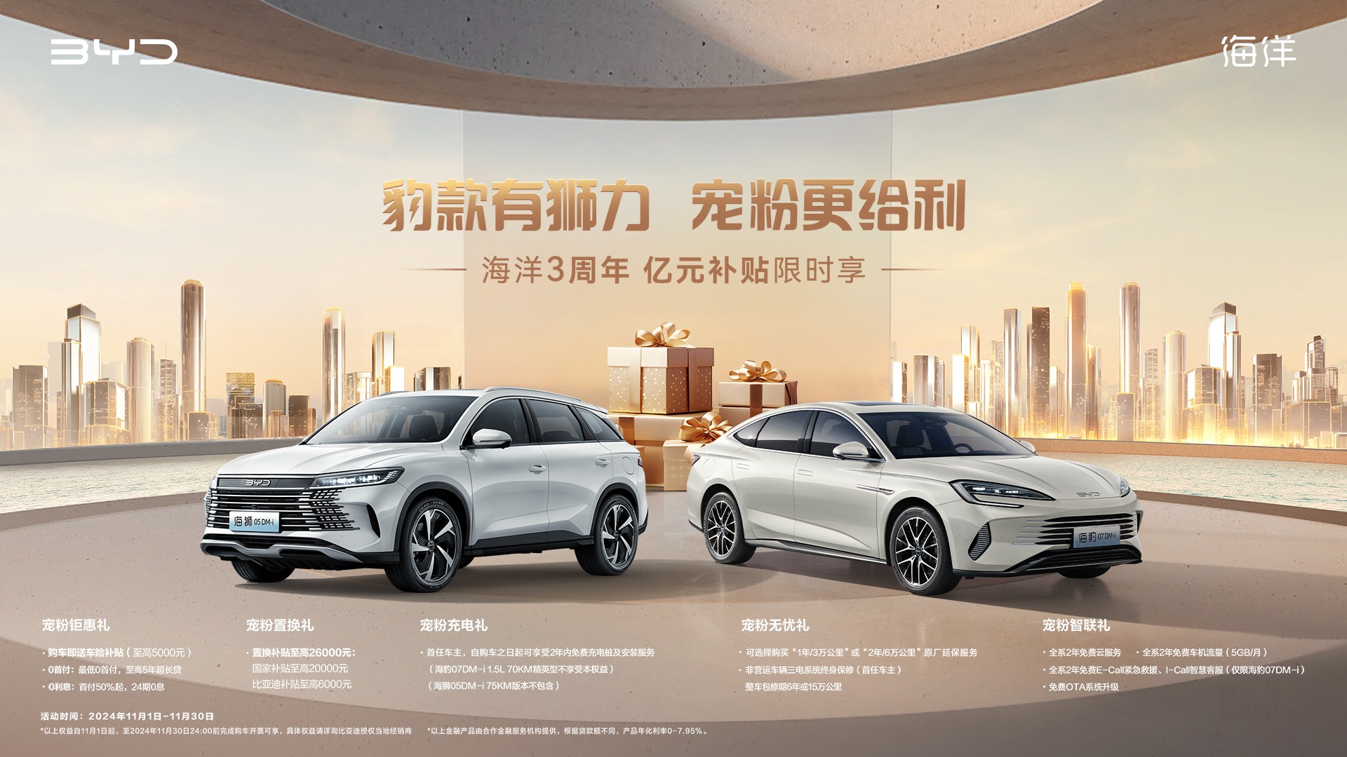 2024年11月,成立仅三年的比亚迪海洋网,聚集超350万用户的热爱,创造了领跑行业的“海洋速度”。以此为起点,海洋网将在新品类开创及技术升级、用户体验上继续发力,强化海豹IP与海狮IP,还将在海豹IP下推出一款全新的休旅车,并推出全新IP与全新的MPV车型。海洋网还将用创新技术惠及更多用户,打造“油电同速”的补能体验,为用户带来超越期待的绿色新出行。
