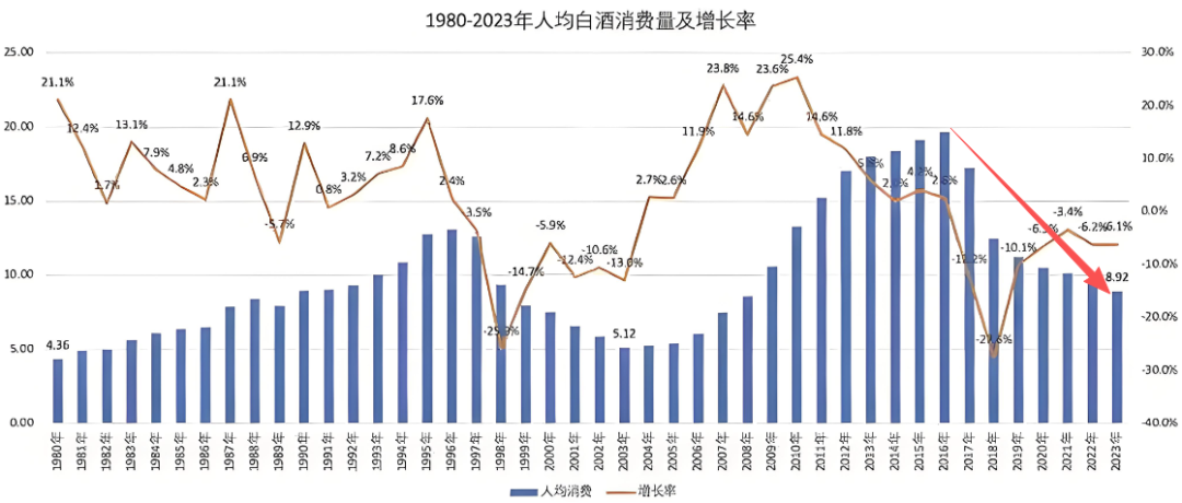 可他们不知道的是,白酒的消费量早就开始减少了。
