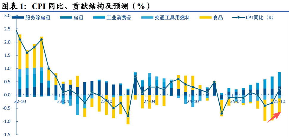 消费大涨的主要原因是今早公布的10月CPI(物价)数据。咱们看两个图就清晰了。
