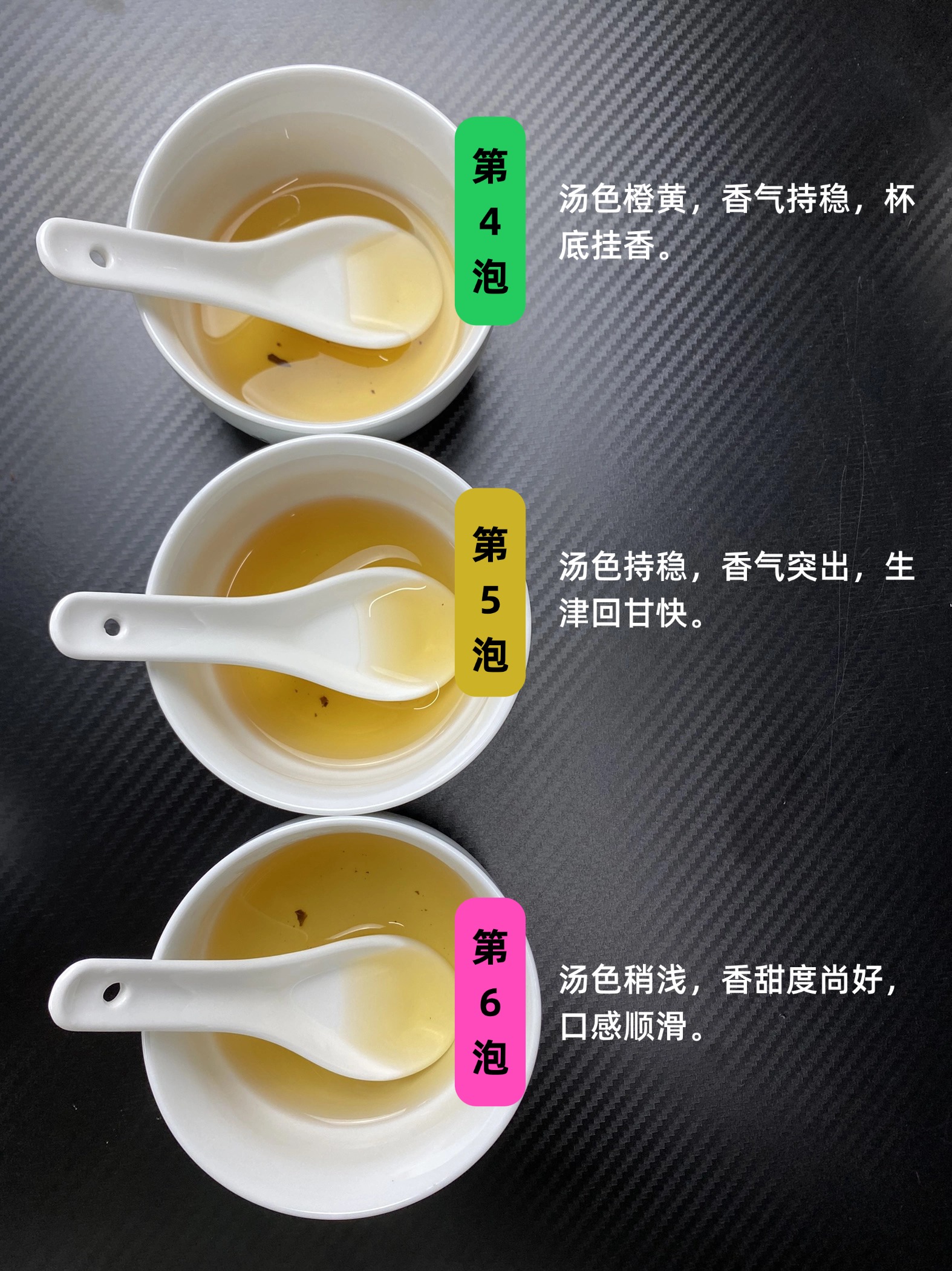 第五泡,汤色持稳,香气突出,生津回甘快。